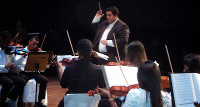 | Maestro Manoel Macário regendo a orquestra Experimental de Barueri |